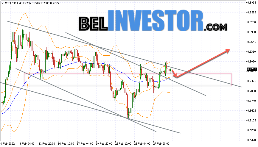 Ripple XRP/USD торгуется на уровне 0.7765. Котировки криптовалюты торгуются выше уровня скользящей средней с периодом 55. Это указывает на наличие бычьей тенденции по Ripple. На данный момент котировки криптовалюты движутся вблизи верхней границы полос индикатора Bollinger Bands. Ripple XRP/USD прогноз на сегодня 3 марта 2022 В рамках прогноза курса Ripple ожидается тест уровня 0.7500. Откуда стоит ожидать попытку продолжения роста XRP/USD и дальнейшего развития восходящей тенденции. Целью такого движения выступает область вблизи уровня 0.8400. Консервативная область для покупок Ripple располагается вблизи нижней границы полос индикатора Bollinger Bands на уровне 0.7000. Отменой варианта продолжения роста курса Ripple станет пробой области нижней границы полос индикатора Bollinger Bands. А также скользящей средней с периодом 55 и закрытие котировок пары ниже области 0.6720. Это укажет на смену текущей тенденции в пользу медвежьей по XRP/USD. В случае пробоя верхней границы полос индикатора Bollinger Bands стоит ожидать ускорения падения криптовалюты. Ripple XRP/USD прогноз на сегодня 3 марта 2022 предполагает тест уровня 0.7500. Далее ожидается продолжение роста […]