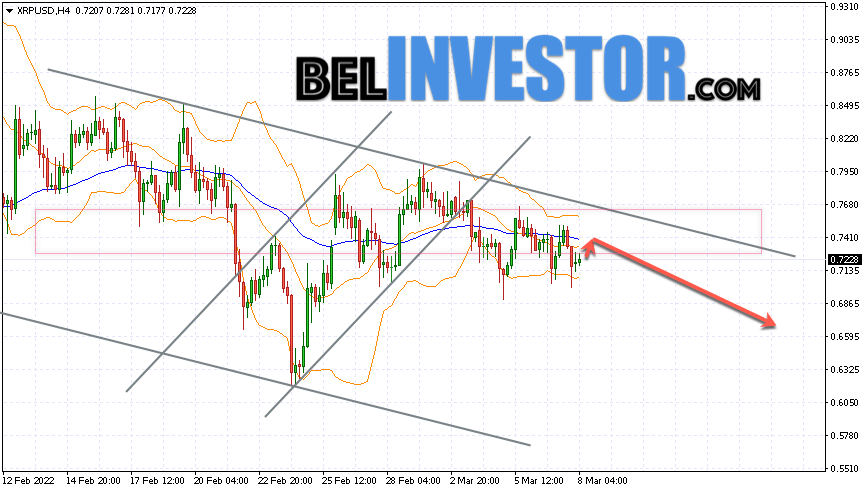 Ripple XRP/USD торгуется на уровне 0.7228. Котировки криптовалюты торгуются ниже уровня скользящей средней с периодом 55. Это указывает на наличие медвежьей тенденции по Ripple. На данный момент котировки криптовалюты движутся вблизи средней границы полос индикатора Bollinger Bands. Ripple XRP/USD прогноз на сегодня 9 марта 2022 В рамках прогноза курса Ripple ожидается тест уровня 0.7410. Откуда стоит ожидать попытку продолжения падения XRP/USD и дальнейшего развития нисходящей тенденции. Целью такого движения выступает область вблизи уровня 0.6670. Консервативная область для продаж Ripple располагается вблизи верхней границы полос индикатора Bollinger Bands на уровне 0.7580. Отменой варианта продолжения снижения курса Ripple станет пробой области верхней границы полос индикатора Bollinger Bands. А также скользящей средней с периодом 55 и закрытие котировок пары выше области 0.7850. Это укажет на смену текущей тенденции в пользу бычьей по XRP/USD. В случае пробоя нижней границы полос индикатора Bollinger Bands стоит ожидать ускорения падения криптовалюты. Ripple XRP/USD прогноз на сегодня 9 марта 2022 предполагает тест уровня 0.7410. Далее ожидается продолжение падения […]