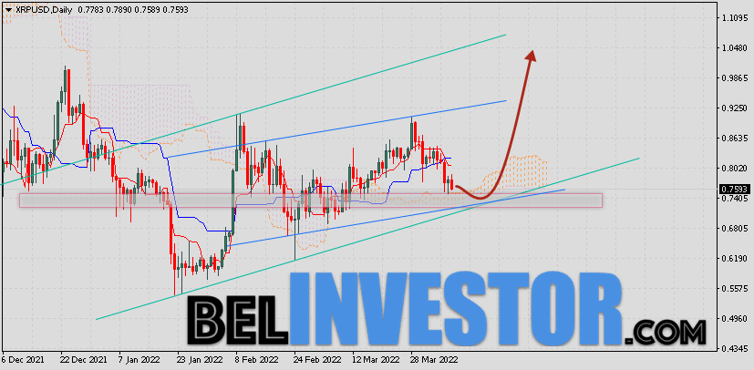 Криптовалюта Ripple завершает торговую неделю вблизи области 0.7593. Котировки XRP/USD торгуются выше верхней границы Облака Ichimoku Kinko Hyo. Это указывает на наличие бычьей тенденции по монете Ripple. В рамках прогноза курса цифровой валюты на торговую неделю 11 — 15 апреля 2022. Ожидается развитие коррекции и тест нижней границы Облака индикатора Ichimoku вблизи уровня 0.7425. Откуда стоит ожидать отскок вверх и попытку продолжения роста курса криптовалюты с целью вблизи уровня 1.0480. Курс XRP прогноз на 11 — 15 апреля 2022 Дополнительным сигналом в пользу роста криптовалюты выступит тест уровня поддержки на графике цены. Вторым сигналом станет отскок от нижней границы бычьего канала. Ранее был получен слабый сигнал для продаж криптовалюты Ripple. Сигнал сформировался за счет пересечения сигнальных линий на уровне 0.7475. Ближайшая область сопротивления по XRP располагается на уровне 0.9245. Области поддержки по XRP/USD располагается на уровне 0.7365. Отменой варианта роста котировок Ripple станет пробой нижней границы Облака Ichimoku Kinko Hyo с закрытием котировок ниже области 0.6805. Это укажет на смену […]