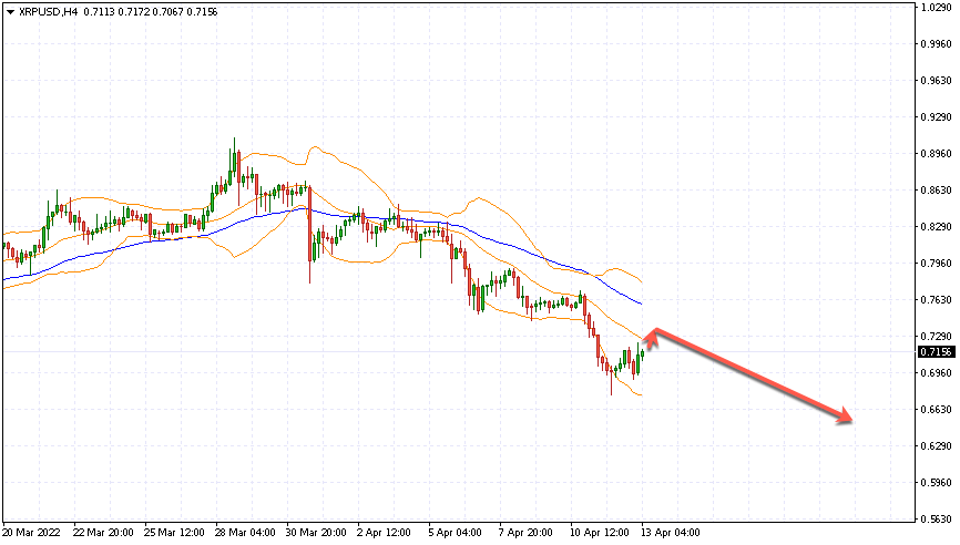 Ripple XRP/USD торгуется на уровне 0.7156. Котировки криптовалюты торгуются ниже уровня скользящей средней с периодом 55. Это указывает на наличие медвежьей тенденции по Ripple. На данный момент котировки криптовалюты движутся вблизи средней границы полос индикатора Bollinger Bands. Ripple XRP/USD прогноз на сегодня 14 апреля 2022 В рамках прогноза курса Ripple ожидается тест уровня 0.7350. Откуда стоит ожидать попытку продолжения падения XRP/USD и дальнейшего развития нисходящей тенденции. Целью такого движения выступает область вблизи уровня 0.6500. Консервативная область для продаж Ripple располагается вблизи верхней границы полос индикатора Bollinger Bands на уровне 0.7780. Отменой варианта продолжения снижения курса Ripple станет пробой области верхней границы полос индикатора Bollinger Bands. А также скользящей средней с периодом 55 и закрытие котировок пары выше области 0.8020. Это укажет на смену текущей тенденции в пользу бычьей по XRP/USD. В случае пробоя нижней границы полос индикатора Bollinger Bands стоит ожидать ускорения падения криптовалюты. Ripple XRP/USD прогноз на сегодня 14 апреля 2022 предполагает тест уровня 0.7350. Далее ожидается продолжение падения […]
