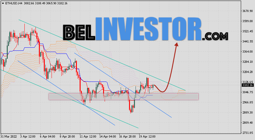 Криптовалюта Ethereum торгуется на уровне 3102 и продолжает движение в рамках роста и покинули пределы нисходящего канала. Котировки ETH/USD движутся внутри Облака Ichimoku Kinko Hyo. Это указывает на наличие боковой тенденции по Ethereum. В рамках прогноза курса Эфириум на 22 апреля 2022. Ожидается развитие снижения цифрового актива и тест нижней границы Облака индикатора Ichimoku Kinko Hyo вблизи уровня 3045. Откуда стоит ожидать отскок и попытку продолжения роста ETH/USD с целью выше уровня 3405. ETH/USD прогноз и курс Ethereum на 22 апреля 2022 Дополнительным сигналом в пользу роста криптовалюты выступит тест уровня поддержки на графике цены. Вторым сигналом станет отскок от верхней границы медвежьего канала. Ранее был получен слабый сигнал для продаж криптовалюты Ethereum. Сигнал сформировался за счет пересечения сигнальных линий на уровне 3395. Ближайшая область сопротивления располагается на уровне 3205. Область поддержки ETH/USD располагается на уровне 2995. Отменой варианта роста стоимости криптовалюты Ethereum станет падение и пробой нижней границы Облака индикатора Ишимоку с закрытием цены под уровнем 2905. Такой сценарий […]