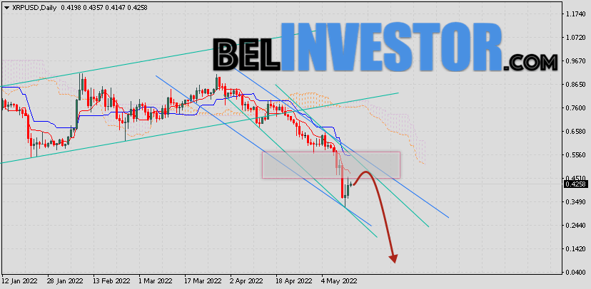 Криптовалюта Ripple завершает торговую неделю вблизи области 0.4258. Котировки XRP/USD торгуются ниже нижней границы Облака Ichimoku Kinko Hyo. Это указывает на наличие медвежьей тенденции по монете Ripple. В рамках прогноза курса цифровой валюты на торговую неделю 16 — 20 мая 2022. Ожидается развитие коррекции и тест области сигнальных линий индикатора Ichimoku вблизи уровня 0.4595. Откуда стоит ожидать отскок вниз и попытку продолжения падения курса криптовалюты с целью вблизи уровня 0.1355. Курс XRP прогноз на 16 — 20 мая 2022 Дополнительным сигналом в пользу падения криптовалюты выступит тест уровня сопротивления на графике цены. Вторым сигналом станет отскок от верхней границы медвежьего канала. Ранее был получен слабый сигнал для продаж криптовалюты Ripple. Сигнал сформировался за счет пересечения сигнальных линий на уровне 0.5015. Ближайшая область сопротивления по XRP располагается на уровне 0.9005. Области поддержки по XRP/USD располагается на уровне 0.3405. Отменой варианта падения котировок Ripple станет пробой верхней границы Облака Ichimoku Kinko Hyo с закрытием котировок выше области 0.7855. Это укажет на смену […]