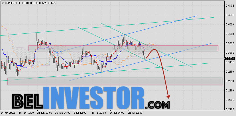 Криптовалюта Ripple торгуется на уровне 0.3276 и продолжает движение в рамках падения и бычьего канала. Котировки XRP/USD движутся ниже нижней границы Облака Ichimoku Kinko Hyo. Это указывает на наличие медвежьей тенденции по Ripple. В рамках прогноза курса цифровой валюты на 27 июля 2022. Ожидается развитие коррекции актива и тест нижней границы Облака индикатора Ichimoku Kinko Hyo вблизи уровня 0.3405. Откуда стоит ожидать отскок вниз и попытку продолжения падения стоимости криптовалюты XRP с потенциальной целью вблизи уровня 0.2385. Ripple прогноз и аналитика XRP/USD на 27 июля 2022 Дополнительным сигналом в пользу снижения криптовалюты XRP/USD выступит тест области сопротивления на графике цены криптовалюты. Вторым сигналом станет отскок от верхней границы медвежьего канала. Ранее был получен слабый сигнал для продаж криптовалюты Ripple. Сигнал сформировался за счет пересечения сигнальных линий на уровне 0.3565. Ближайшая область сопротивления по Ripple располагается на уровне 0.3405. Область поддержки по XRP/USD располагается на уровне 0.2865. Отменой варианта падения криптовалюты Ripple в рамках прогноза станет сильный рост котировок актива и […]