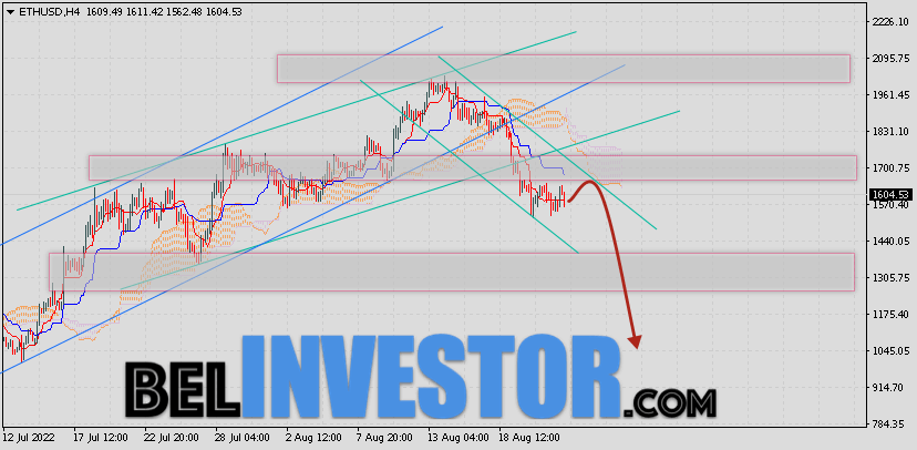Криптовалюта Ethereum торгуется на уровне 1604 и продолжает движение в рамках коррекции и нисходящего канала. Котировки ETH/USD движутся выше верхней границы Облака Ichimoku Kinko Hyo. Это указывает на наличие медвежьей тенденции по Ethereum. В рамках прогноза курса Эфириум на 24 августа 2022. Ожидается развитие коррекции цифрового актива и тест нижней границы Облака Ichimoku Kinko Hyo вблизи уровня 1645. Откуда стоит ожидать отскок и попытку продолжения падения ETH/USD с целью ниже уровня 1055. ETH/USD прогноз и курс Ethereum на 24 августа 2022 Дополнительным сигналом в пользу падения криптовалюты выступит тест уровня сопротивления на графике цены. Вторым сигналом станет отскок от верхней границы нисходящего канала. Ранее был получен слабый сигнал для продаж криптовалюты Ethereum. Сигнал сформировался за счет пересечения сигнальных линий на уровне 1915. Ближайшая область сопротивления по Ethereum располагается на уровне 1725. Область поддержки ETH/USD располагается на уровне 1405. Отменой варианта падения стоимости криптовалюты Ethereum станет сильный рост и пробой верхней границы Облака индикатора Ишимоку с закрытием цены над уровнем 1925. […]