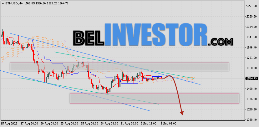 Криптовалюта Ethereum торгуется на уровне 1564 и продолжает движение в рамках коррекции и нисходящего канала. Котировки ETH/USD движутся внутри Облака Ichimoku Kinko Hyo. Это указывает на наличие боковой тенденции по Ethereum. В рамках прогноза курса Эфириум на 6 сентября 2022. Ожидается развитие коррекции цифрового актива и тест верхней границы Облака Ichimoku Kinko Hyo вблизи уровня 1575. Откуда стоит ожидать отскок и попытку продолжения падения ETH/USD с целью ниже уровня 1225. ETH/USD прогноз и курс Ethereum на 6 сентября 2022 Дополнительным сигналом в пользу падения криптовалюты выступит тест уровня сопротивления на графике цены. Вторым сигналом станет отскок от верхней границы нисходящего канала. Ранее был получен сильный сигнал для продаж криптовалюты Ethereum. Сигнал сформировался за счет пересечения сигнальных линий на уровне 1555. Ближайшая область сопротивления по Ethereum располагается на уровне 1665. Область поддержки ETH/USD располагается на уровне 1255. Отменой варианта падения стоимости криптовалюты Ethereum станет сильный рост и пробой верхней границы Облака индикатора Ишимоку с закрытием цены над уровнем 1725. Такой сценарий […]