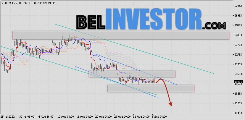 Криптовалюта Bitcoin торгуется на уровне 19835 продолжает движение в рамках коррекции и формирования модели ”Треугольник”. Котировки BTC/USD располагаются ниже нижней границы Облака индикатора Ichimoku Kinko Hyo. Это предполагает наличие краткосрочной медвежьей тенденции по цифровому активу. В рамках прогноза курса Биткоина на 7 сентября 2022. Ожидается развитие коррекции стоимости актива и тест нижней границы Облака индикатора Ишимоку вблизи уровня 20205. Откуда стоит ожидать отскок и попытку продолжения падения криптовалюты Bitcoin с потенциальной целью на уровне 17465. Курс Bitcoin и прогноз BTC/USD на 7 сентября 2022 Дополнительным сигналом в пользу снижения криптовалюты BTC/USD выступит тест области сопротивления на графике цены монеты. Вторым сигналом станет отскок от верхней границы модели ”Треугольник”. Ранее был получен сильный сигнал для продаж криптовалюты Bitcoin. Сигнал сформировался за счет пересечения сигнальных линий на уровне 20805. Ближайшая область сопротивления по BTC/USD на графике располагается на уровне 20665. Область поддержки по Bitcoin располагается на уровне 18955. Отменой такого варианта падения стоимости цифрового актива Bitcoin завтра станет сильный рост и пробой […]