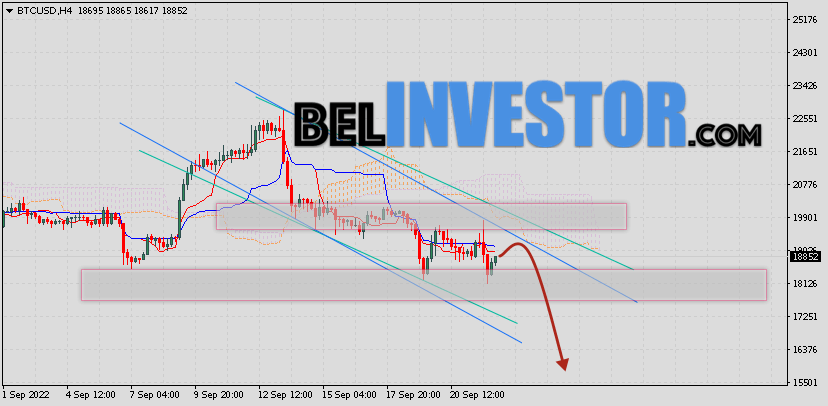 Криптовалюта Bitcoin торгуется на уровне 18852 продолжает движение в рамках падения и нисходящего канала. Котировки BTC/USD располагаются ниже нижней границы Облака индикатора Ichimoku Kinko Hyo. Это предполагает наличие краткосрочной медвежьей тенденции по цифровому активу. В рамках прогноза курса Биткоина на 23 сентября 2022. Ожидается развитие коррекции стоимости актива и тест нижней границы Облака индикатора Ишимоку вблизи уровня 19055. Откуда стоит ожидать отскок и попытку продолжения падения криптовалюты Bitcoin с потенциальной целью на уровне 16255. Курс Bitcoin и прогноз BTC/USD на 23 сентября 2022 Дополнительным сигналом в пользу снижения криптовалюты BTC/USD выступит тест области сопротивления на графике цены монеты. Вторым сигналом станет отскок от верхней границы нисходящего канала. Ранее был получен сильный сигнал для продаж криптовалюты Bitcoin. Сигнал сформировался за счет пересечения сигнальных линий на уровне 19505. Ближайшая область сопротивления по BTC/USD на графике располагается на уровне 19905. Область поддержки по Bitcoin располагается на уровне 18105. Отменой такого варианта падения стоимости цифрового актива Bitcoin завтра станет сильный рост и пробой верхней […]