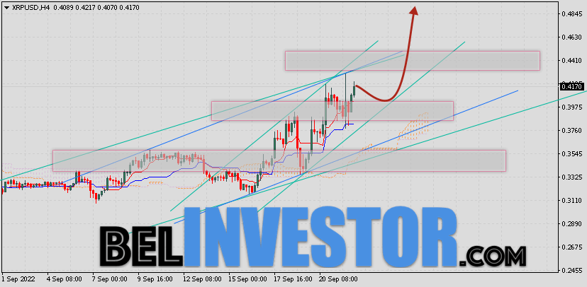 Криптовалюта Ripple торгуется на уровне 0.4170 и продолжает движение в рамках роста и бычьего канала. Котировки XRP/USD движутся выше верхней границы Облака Ichimoku Kinko Hyo. Это указывает на наличие бычьей тенденции по Ripple. В рамках прогноза курса цифровой валюты на 23 сентября 2022. Ожидается развитие коррекции актива и тест области сигнальных линий индикатора Ichimoku Kinko Hyo вблизи уровня 0.3965. Откуда стоит ожидать отскок цены вверх и попытку продолжения роста стоимости криптовалюты XRP с потенциальной целью вблизи уровня 0.4855. Ripple прогноз и аналитика XRP/USD на 23 сентября 2022 Дополнительным сигналом в пользу подъёма криптовалюты XRP/USD выступит тест области поддержки на графике цены криптовалюты. Вторым сигналом станет отскок от нижней границы бычьего канала. Ранее был получен сигнал средней силы для покупок криптовалюты Ripple. Сигнал сформировался за счет пересечения сигнальных линий на уровне 0.3345. Ближайшая область сопротивления по Ripple располагается на уровне 0.4415. Область поддержки по XRP/USD располагается на уровне 0.3975. Отменой варианта роста криптовалюты Ripple в рамках прогноза станет падение котировок актива […]