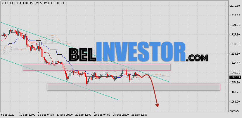 Криптовалюта Ethereum торгуется на уровне 1305 и продолжает движение в рамках падения и нисходящего канала. Котировки ETH/USD движутся ниже нижней границы Облака Ichimoku Kinko Hyo. Это указывает на наличие медвежьей тенденции по Ethereum. В рамках прогноза курса Эфириум на 30 сентября 2022. Ожидается развитие коррекции цифрового актива и тест верхней границы Облака индикатора Ichimoku Kinko Hyo вблизи уровня 1335. Откуда стоит ожидать отскок и попытку продолжения падения ETH/USD с целью ниже уровня 975. ETH/USD прогноз и курс Ethereum на 30 сентября 2022 Дополнительным сигналом в пользу падения криптовалюты выступит тест уровня сопротивления на графике цены. Вторым сигналом станет отскок от верхней границы медвежьего канала. Ранее был получен слабый сигнал для покупок криптовалюты Ethereum. Сигнал сформировался за счет пересечения сигнальных линий на уровне 1295. Ближайшая область сопротивления по Ethereum располагается на уровне 1445. Область поддержки ETH/USD располагается на уровне 1165. Отменой варианта снижения стоимости криптовалюты Ethereum станет сильный рост и пробой верхней границы Облака индикатора Ишимоку с закрытием цены над уровнем […]
