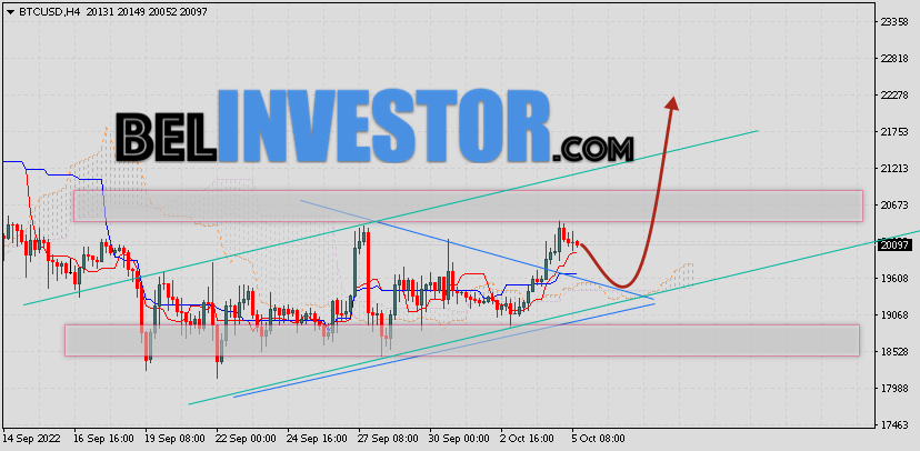 Криптовалюта Bitcoin торгуется на уровне 20097 продолжает движение в рамках роста и начала отработки модели ”Треугольник”. Котировки BTC/USD располагаются выше верхней границы Облака индикатора Ichimoku Kinko Hyo. Это предполагает наличие краткосрочной бычьей тенденции по цифровому активу. В рамках прогноза курса Биткоина на 6 октября 2022. Ожидается развитие коррекции стоимости актива и тест верхней границы Облака индикатора Ишимоку вблизи уровня 19615. Откуда стоит ожидать отскок и попытку продолжения роста криптовалюты Bitcoin с потенциальной целью на уровне 22305. Курс Bitcoin и прогноз BTC/USD на 6 октября 2022 Дополнительным сигналом в пользу роста криптовалюты BTC/USD выступит тест области поддержки на графике цены монеты. Вторым сигналом станет пробой верхней границы модели ”Треугольник”. Ранее был получен сильный сигнал для покупок криптовалюты Bitcoin. Сигнал сформировался за счет пересечения сигнальных линий на уровне 19505. Ближайшая область сопротивления по BTC/USD на графике располагается на уровне 20675. Область поддержки по Bitcoin располагается на уровне 18525. Отменой такого варианта роста стоимости цифрового актива Bitcoin завтра станет падение и пробой нижней […]