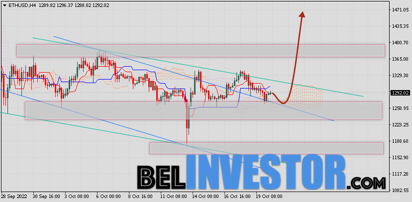 Криптовалюта Ethereum торгуется на уровне 1292 и продолжает движение в рамках нисходящей коррекции и покинула пределы медвежьего канала. Котировки ETH/USD движутся выше верхней Облака Ichimoku Kinko Hyo. Это указывает на наличие бычьей тенденции по Ethereum. В рамках прогноза курса Эфириум на 21 октября 2022. Ожидается развитие коррекции цифрового актива и тест верхней границы Облака индикатора Ichimoku Kinko Hyo вблизи уровня 1265. Откуда стоит ожидать отскок и попытку продолжения роста ETH/USD с целью выше уровня 1475. ETH/USD прогноз и курс Ethereum на 21 октября 2022 Дополнительным сигналом в пользу роста криптовалюты выступит тест уровня поддержки на графике цены. Вторым сигналом станет отбой от верхней границы нисходящего канала, который был пробит покупателями вверх. Ранее был получен слабый сигнал для продаж криптовалюты Ethereum. Сигнал сформировался за счет пересечения сигнальных линий на уровне 1305. Ближайшая область сопротивления по Ethereum располагается на уровне 1395. Область поддержки ETH/USD располагается на уровне 1255. Отменой варианта подъёма стоимости криптовалюты Ethereum станет падение и пробой нижней границы Облака индикатора […]