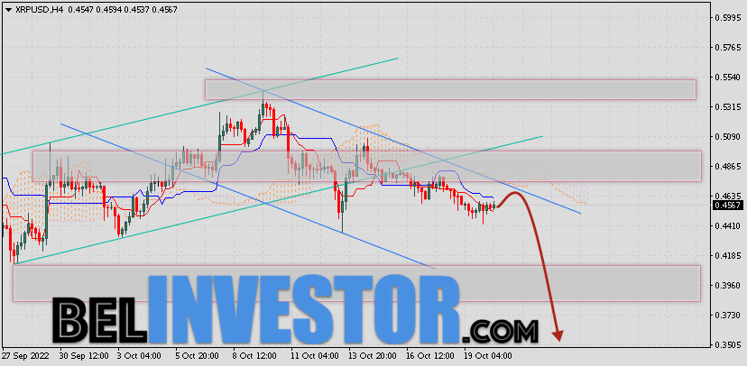 Криптовалюта Ripple торгуется на уровне 0.4567 продолжает движение в рамках падения и нисходящего канала. Котировки XRP/USD движутся ниже нижней границы Облака Ichimoku Kinko Hyo. Это указывает на наличие медвежьей тенденции по Ripple. В рамках прогноза курса цифровой валюты на 21 октября 2022. Ожидается развитие коррекции актива и тест области сигнальных линий индикатора Ichimoku Kinko Hyo вблизи уровня 0.4635. Откуда стоит ожидать отскок цены вниз и попытку продолжения падения стоимости криптовалюты XRP с потенциальной целью вблизи уровня 0.3505. Ripple прогноз и аналитика XRP/USD на 21 октября 2022 Дополнительным сигналом в пользу снижения криптовалюты XRP/USD выступит тест области сопротивления на графике цены криптовалюты. Вторым сигналом станет отскок от верхней границы нисходящего канала. Ранее был получен сильный сигнал для продаж криптовалюты Ripple. Сигнал сформировался за счет пересечения сигнальных линий на уровне 0.4735. Ближайшая область сопротивления по Ripple располагается на уровне 0.4865. Область поддержки по XRP/USD располагается на уровне 0.4095. Отменой варианта снижения криптовалюты Ripple в рамках прогноза на завтра станет сильный рост котировок […]