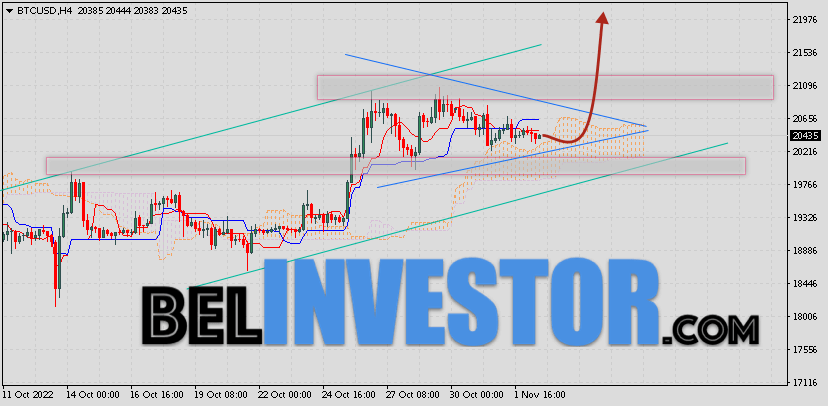 Криптовалюта Bitcoin торгуется на уровне 20435 продолжает движение в рамках коррекции и бычьего канала. Котировки BTC/USD располагаются выше верхней границы Облака индикатора Ichimoku Kinko Hyo. Это предполагает наличие краткосрочной бычьей тенденции по цифровому активу. В рамках прогноза курса Биткоина на 3 ноября 2022. Ожидается развитие коррекции стоимости актива и тест верхней границы Облака индикатора Ишимоку вблизи уровня 20235. Откуда стоит ожидать отскок и попытку продолжения роста криптовалюты Bitcoin с потенциальной целью на уровне 21975. Курс Bitcoin и прогноз BTC/USD на 3 ноября 2022 Дополнительным сигналом в пользу подъёма криптовалюты BTC/USD выступит тест области поддержки на графике цены монеты. Вторым сигналом станет отскок от нижней границы модели ”Треугольник”. Ранее был получен слабый сигнал для продаж криптовалюты Bitcoin. Сигнал сформировался за счет пересечения сигнальных линий на уровне 20305. Ближайшая область сопротивления по BTC/USD на графике располагается на уровне 21005. Область поддержки по Bitcoin располагается на уровне 19765. Отменой такого варианта подъёма стоимости цифрового актива Bitcoin завтра станет падение и пробой нижней границы […]